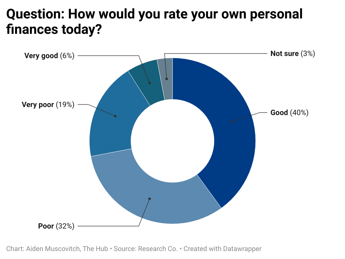 More than 50 percent of Canadians consider their personal finances to be “poor” or “very poor,” a statistic which has gone up by nine points since a similar Research Co. survey was conducted in January 2024.