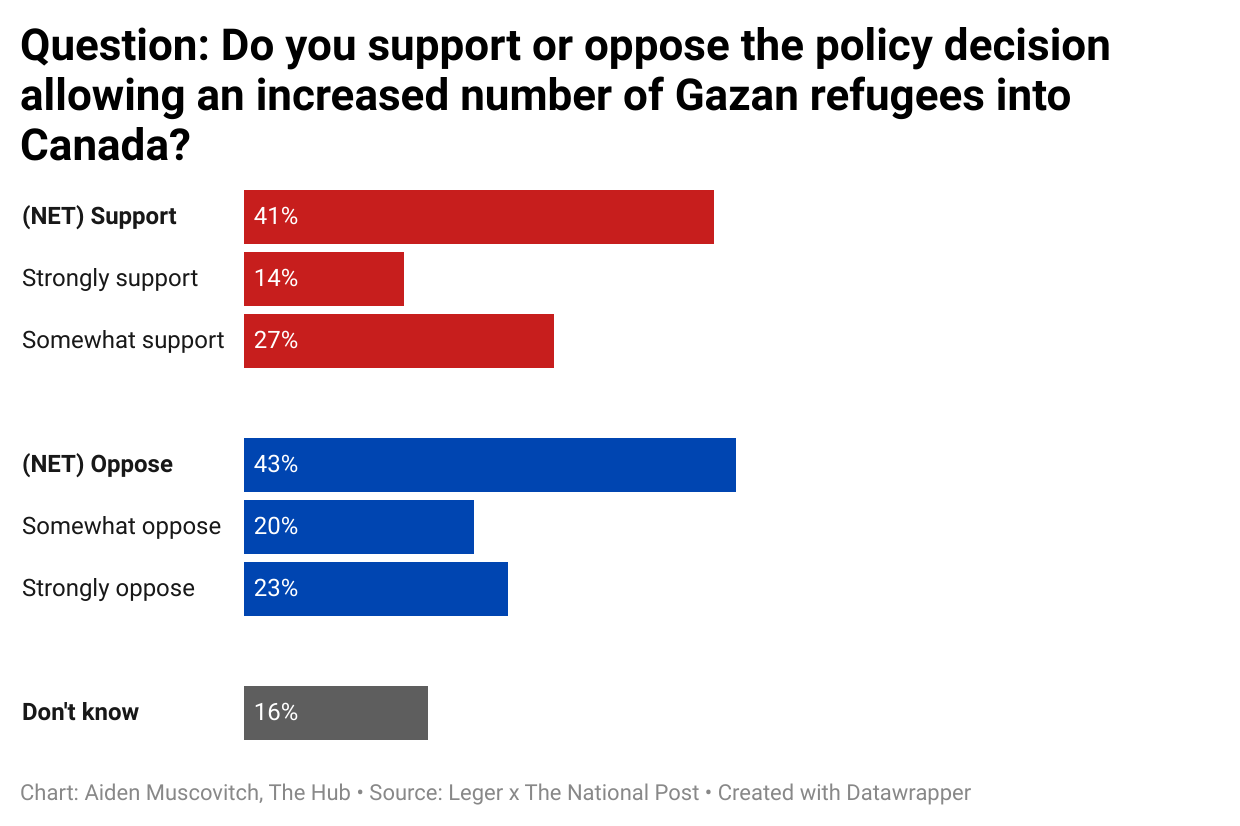 Canadians are split on the government’s decision to raise Gazan refugee cap