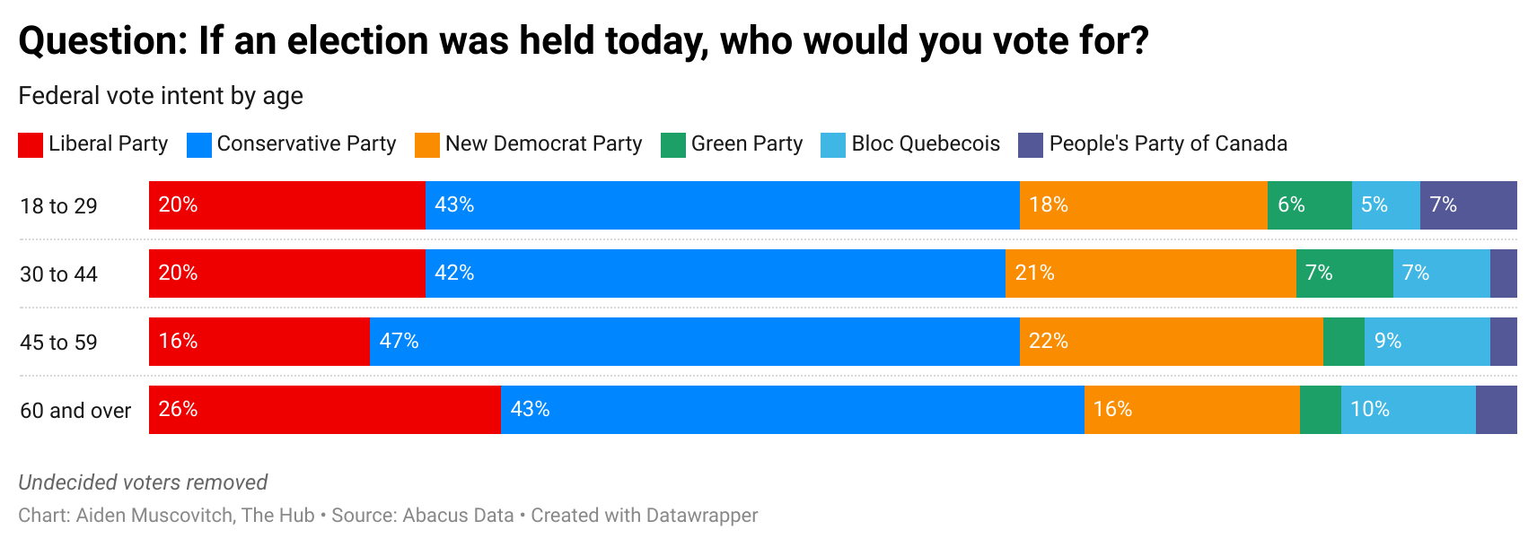 Fifty percent of Canadian voters between the ages of 18 and 29 are voting for Right-leaning parties, including the Conservative Party led by Pierre Poilievre, and the People’s Party of Canada led by Maxime Bernier. This indicates that young Canadians could now be the most conservative age demographic in the country.