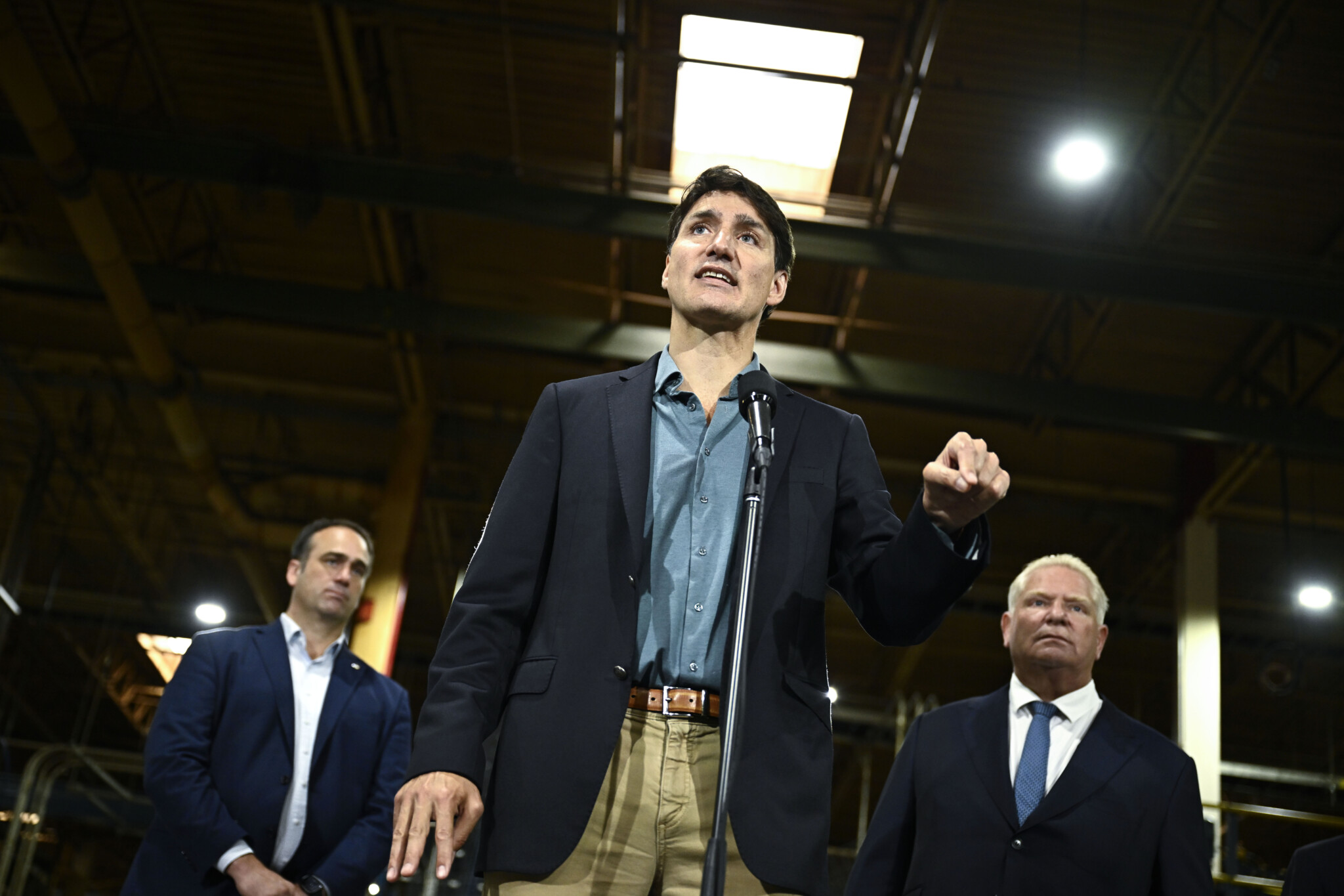 Prime Minister Justin Trudeau arrives to make an announcement regarding a two month suspension of GST on selected goods, at Vince’s Market, a grocery store in Sharon, Ontario, on Thursday November 21, 2024. Chris Young/The Canadian Press.