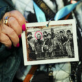 A pro-Palestinian activist looks out from behind the fence at their encampment on the McGill University campus, in Montreal, Wednesday, May 1, 2024. Ryan Remiorz/The Canadian Press.