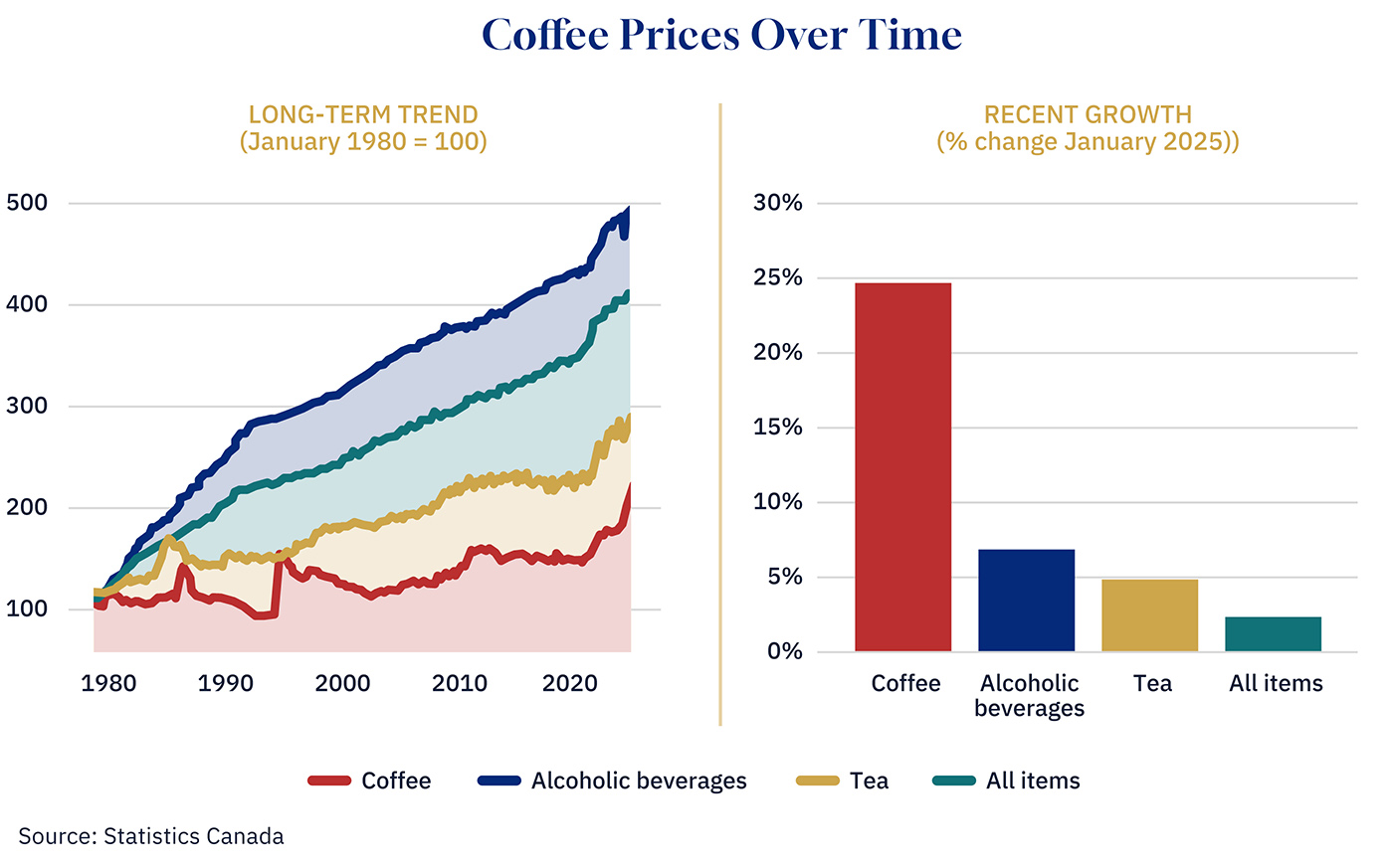 In other words, Canadians can not only afford more cups of coffee today than they could back then, but it has also become more affordable compared with other beverages.