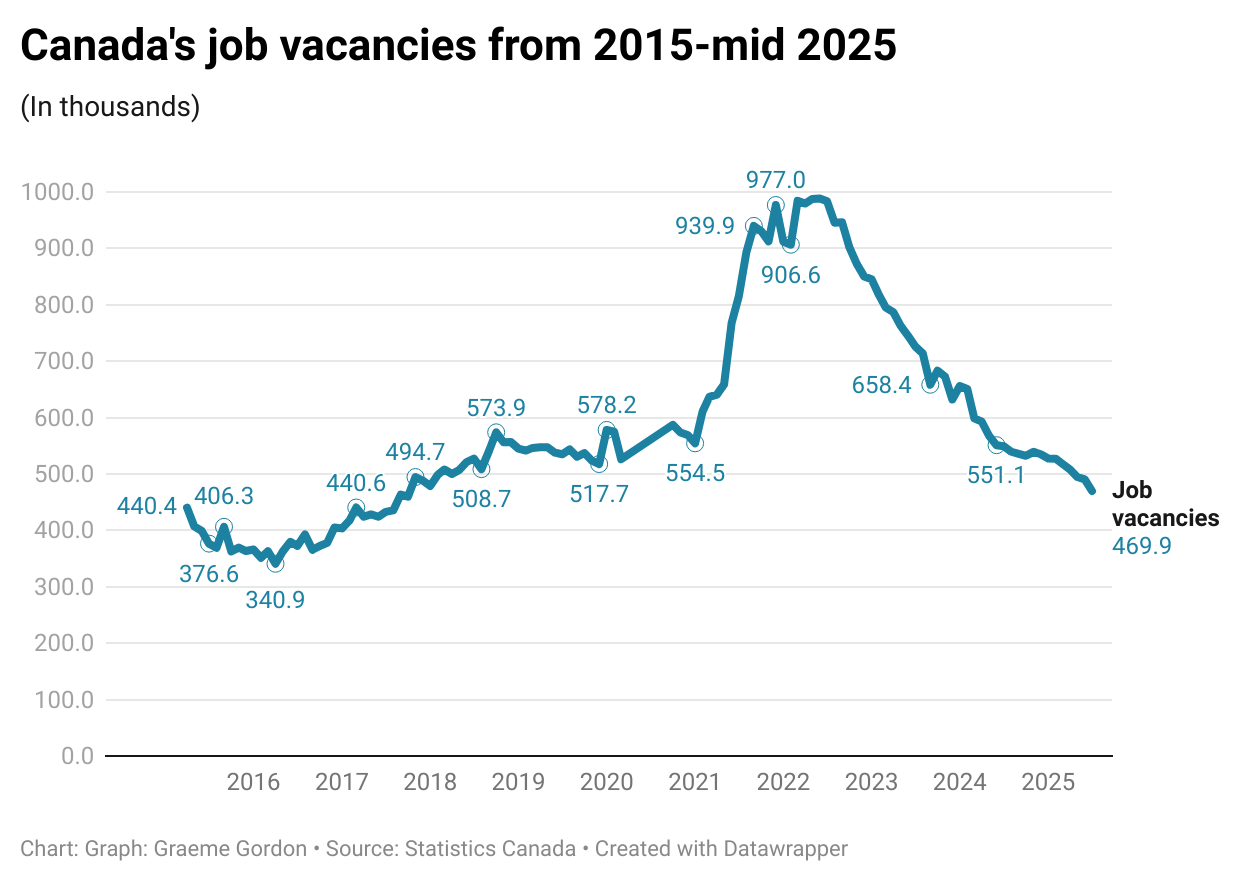 Job recruiting agencies have also noticed a marked decrease in job vacancies, further reflecting Statistics Canada’s report.