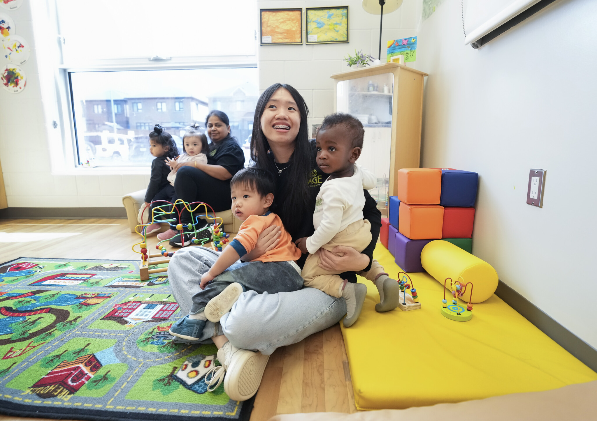 Children are comforted as they play at the Blessed Chiara Badano Child Care Centre in Stouffville, Ont., Friday, May 2, 2025. Nathan Denette/The Canadian Press.