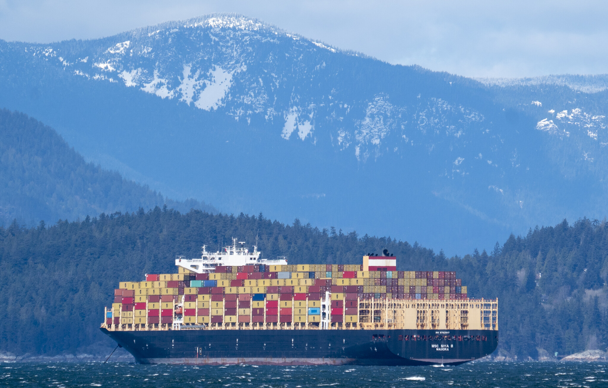 A container ship arrives in Vancouver, B.C., Saturday, April 10, 2021. Jonathan Hayward/The Canadian Press.