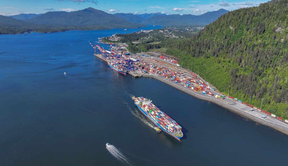 An aerial shot of Fairview Container Terminal, a key hub in Prince Rupert’s port network. Credit: Prince Rupert Port Authority.