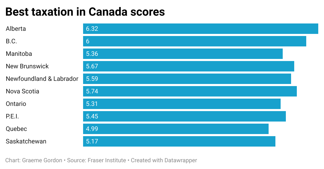 Alberta’s more recent provincial governments have repeatedly run multi-billion dollar deficits, as well as property tax increases, and provincial income tax de-indexation (re-indexed in 2023, but not fully), which critics described as a stealth tax that drew hundreds of millions more from the Albertan taxpayers. These all factor against Alberta’s falling economic freedom ranking. In spite of the recent drop, Alberta still ranks above all other provinces for being the most economically free when it comes to taxation (municipally and provincially), government spending, and labour market regulations of its residents.
