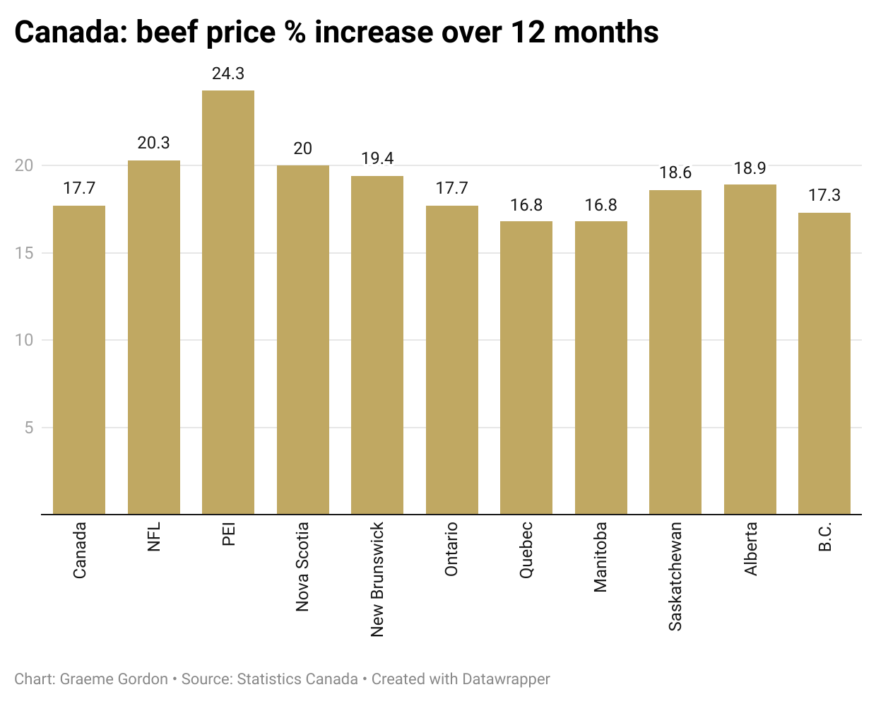 Due to severe droughts in Western Canada in recent years, the cattle herd sizes in Canada are at the lowest levels since the 1980s, while the U.S. has been hit even harder by droughts, resulting in the smallest supply of cattle since the 1960s. The growing costs of labour and fertilizers added to the cost of beef.
