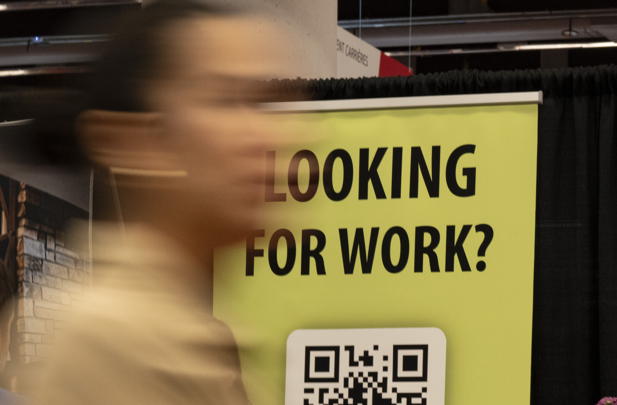People attend a job and continuing education fair in Montreal, Thursday, Oct. 5, 2023. Christinne Muschi/The Canadian Press.