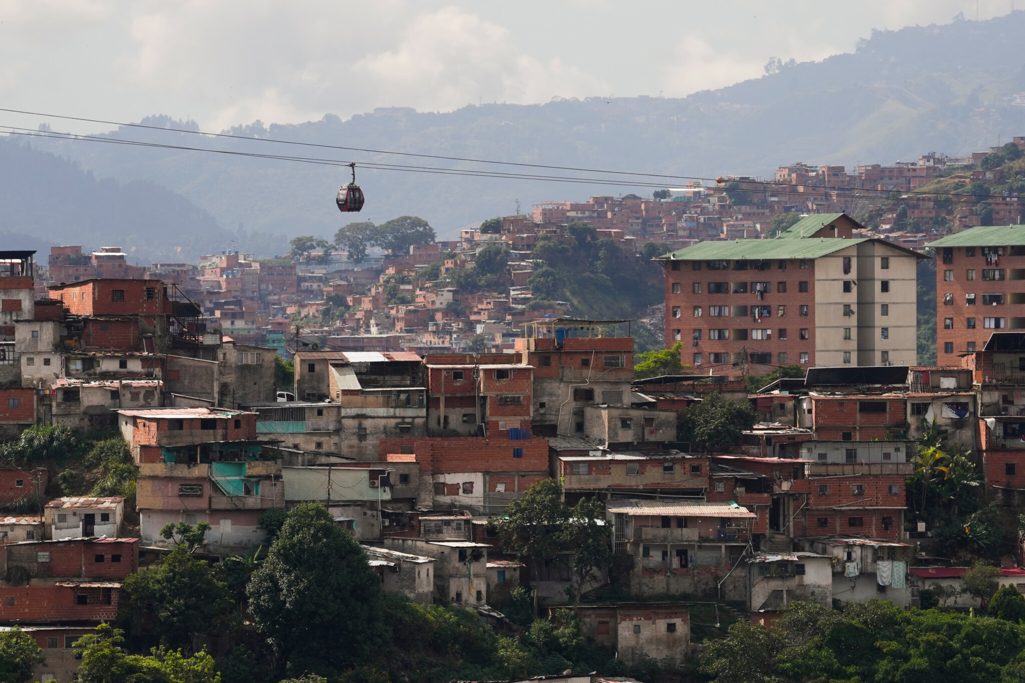 A cable car moves toward the San Agustin neighborhood of Caracas, Venezuela, Tuesday, Dec. 23, 2025. Matias Delacroix/AP Photo.
