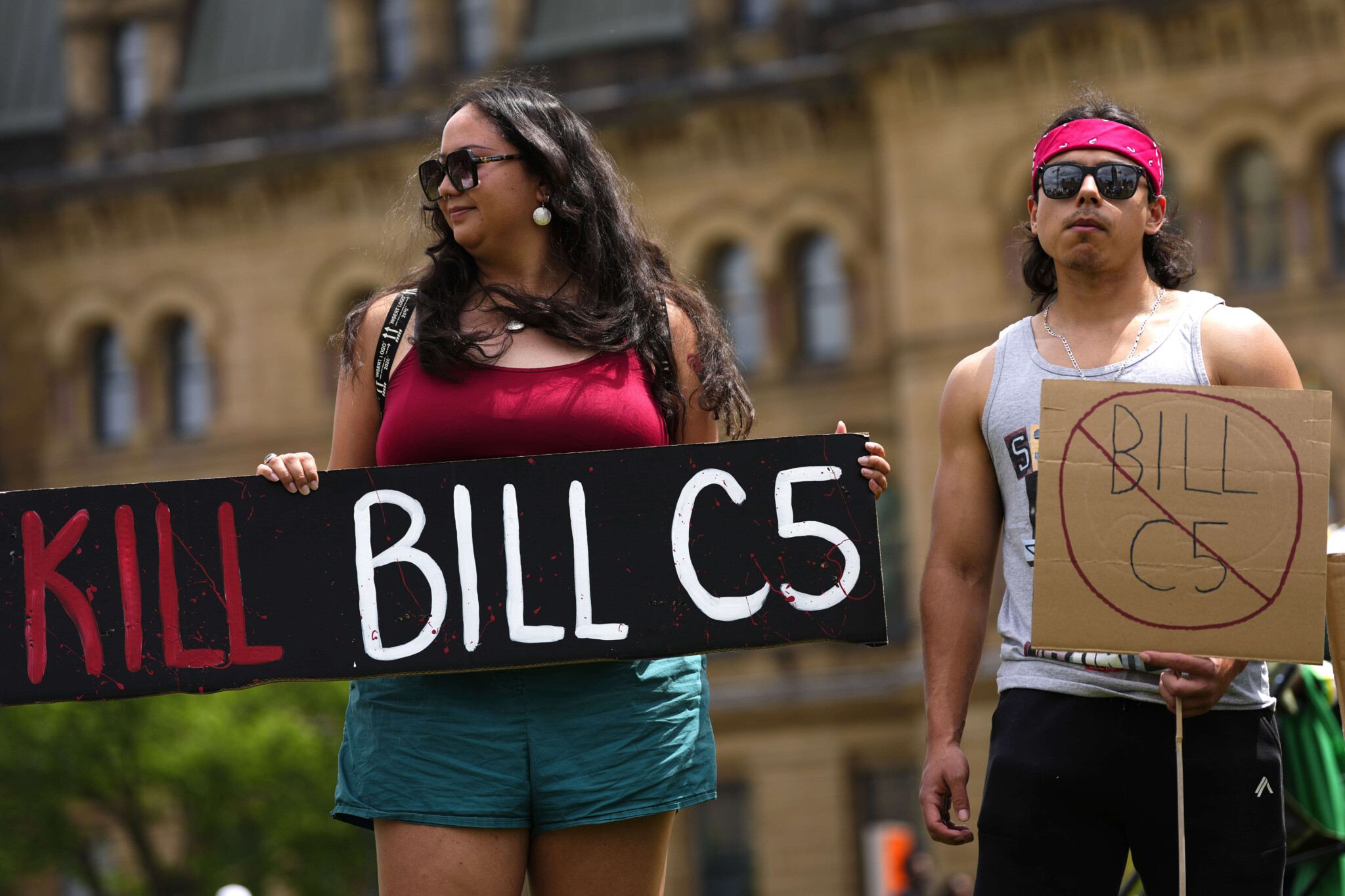 People rally against Bill C-5 on Parliament Hill in Ottawa, on Tuesday, June 17, 2025. Justin Tang/The Canadian Press.