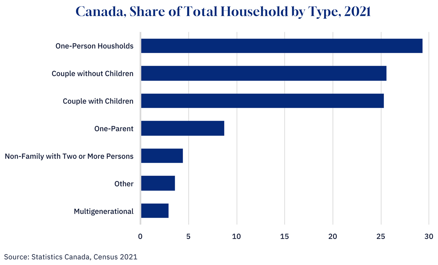 Canada remains a country of families. But families are smaller. More Canadians are living alone. More young adults are delaying independence. More couples are navigating work-family tradeoffs under significant financial pressure. And fewer households include children.
