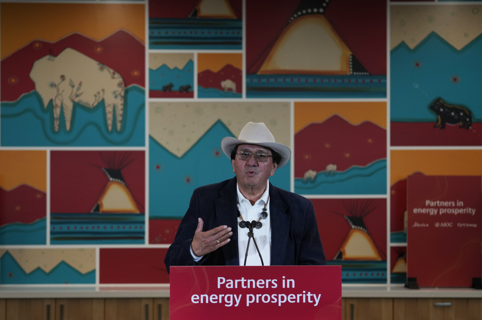 Blood Tribe Chief Council Roy Fox speaks at a news conference regarding a new indigenous energy project with TC Energy in Calgary, Alta., Tuesday, July 30, 2024. Todd Korol/The Canadian Press.