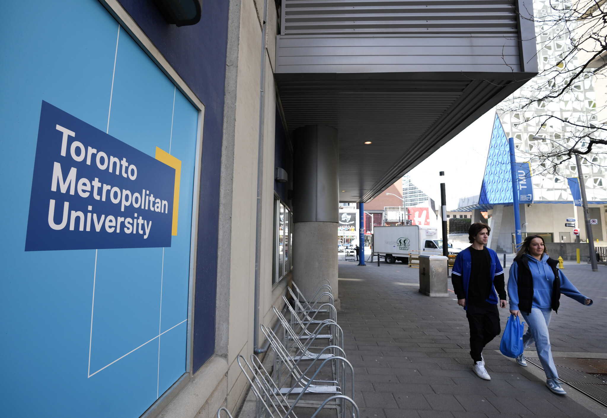 Students make their way around the renamed Toronto Metropolitan University (TMU), formerly known as Ryerson University in Toronto on Wednesday, April 26, 2023. Nathan Denette/The Canadian Press.