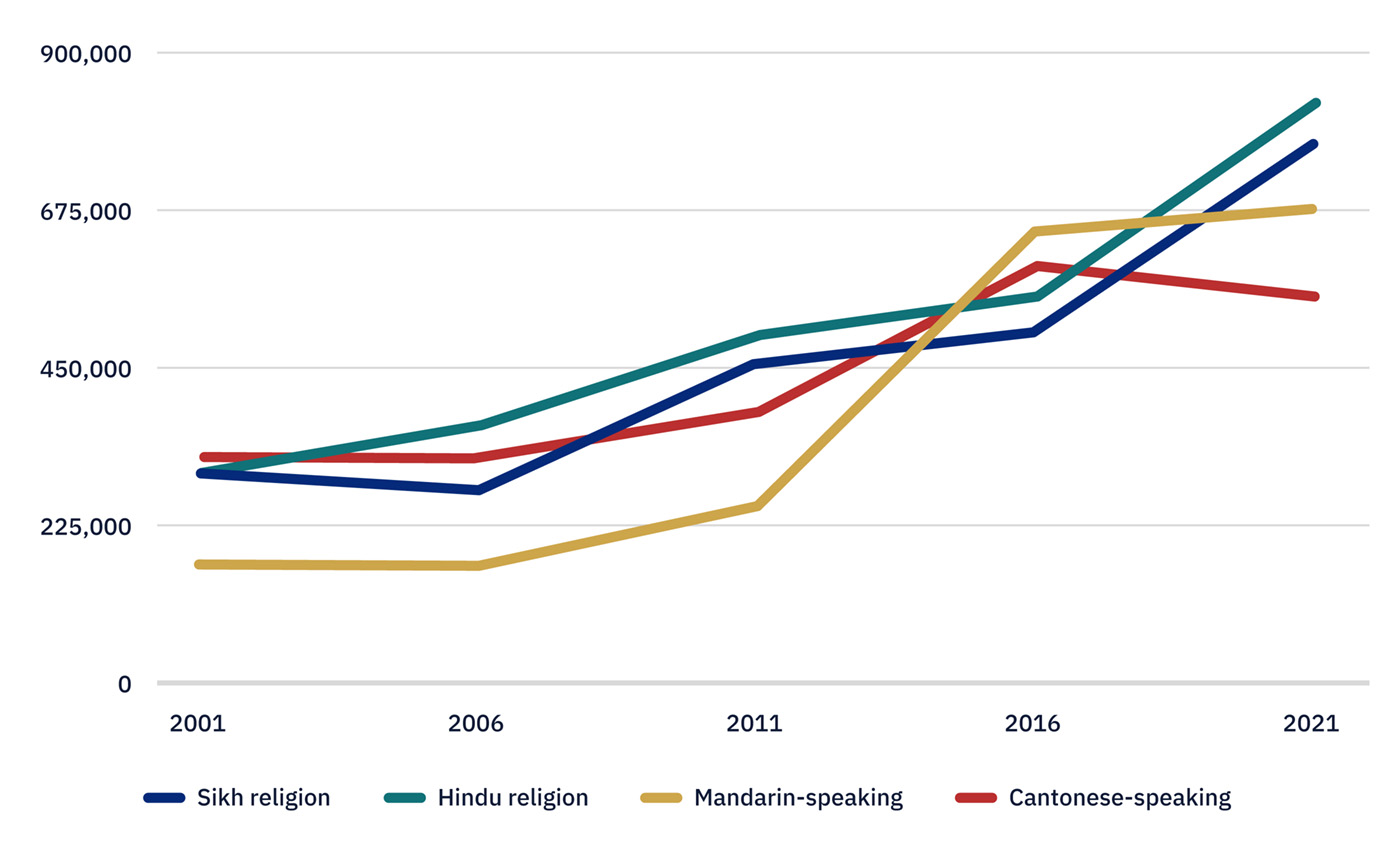 Changes in Canada’s Chinese and South Asian populations, 2001-2021