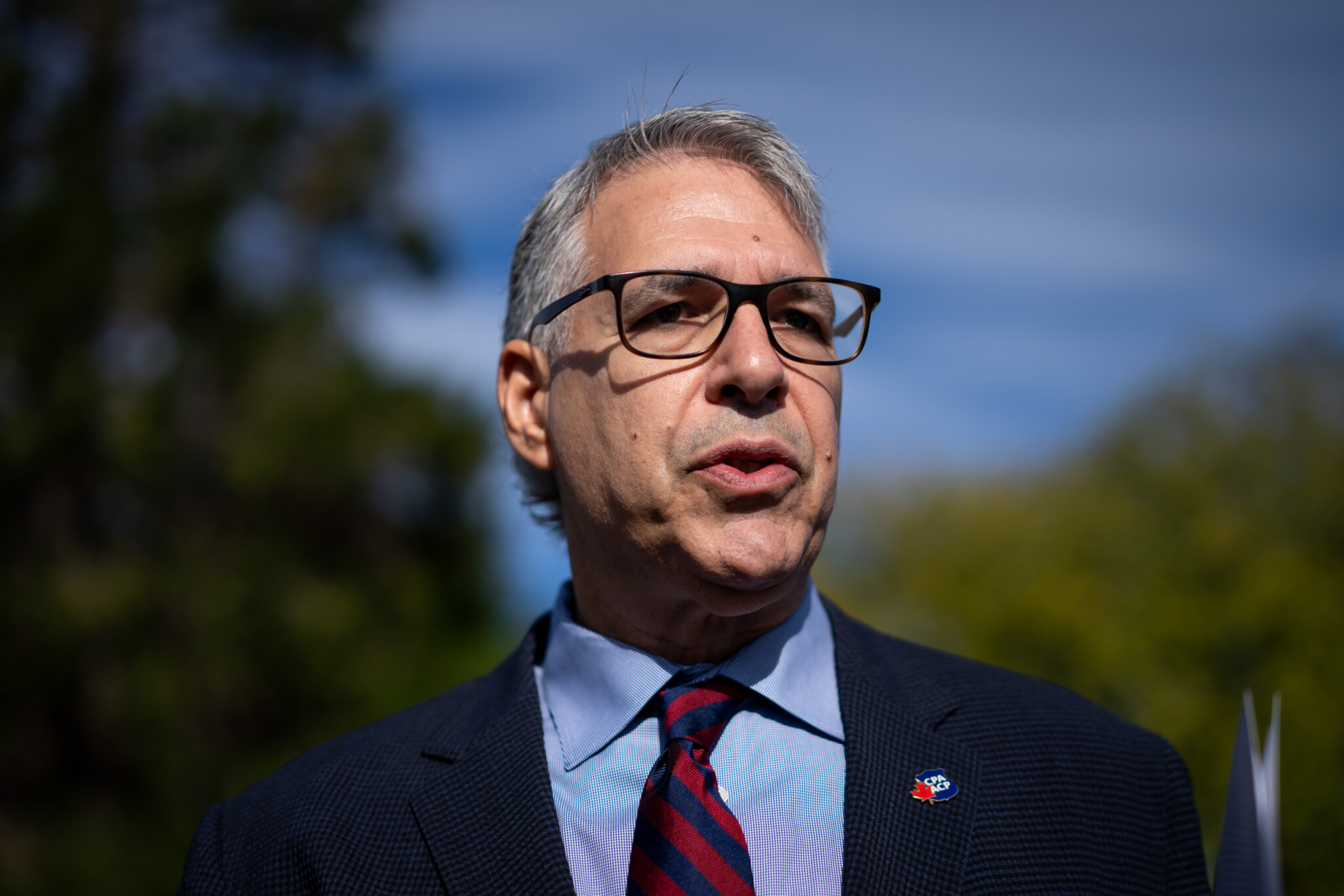 President of the Canadian Police Association, Tom Stamatakis, speaks with media after a news conference in Vancouver, B.C., Monday, Sept. 16, 2024. Ethan Cairns/The Canadian Press.